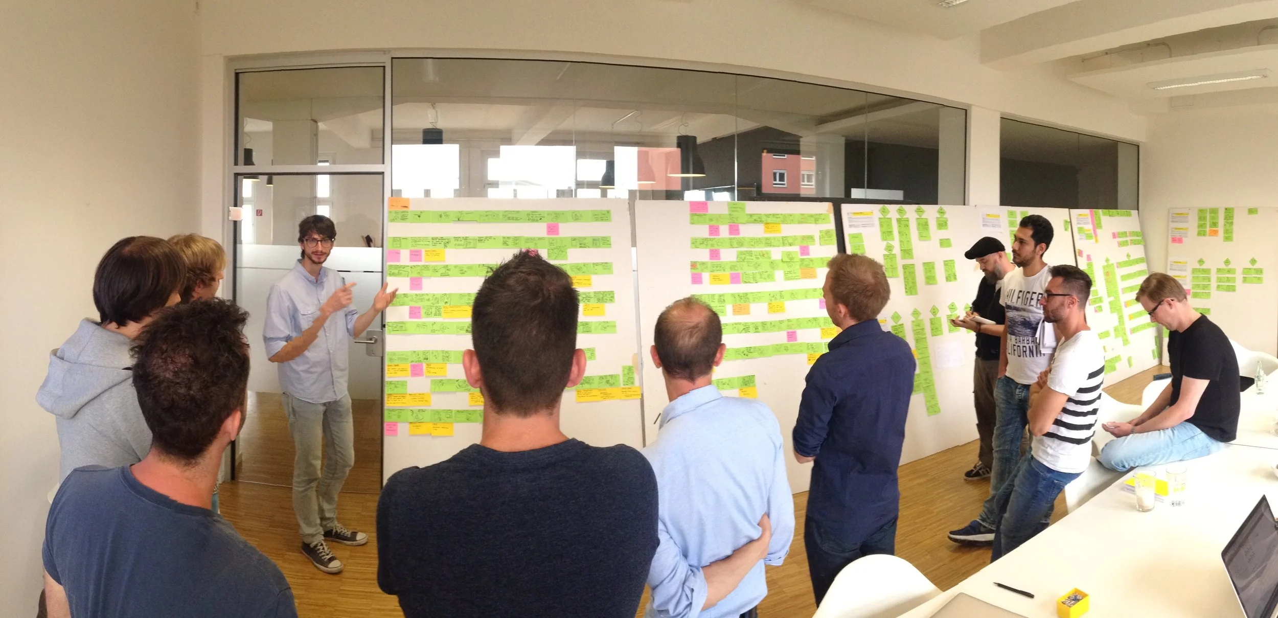 Me presenting the overall User Experience Concept to the original team (3 designers and 8 developers)
